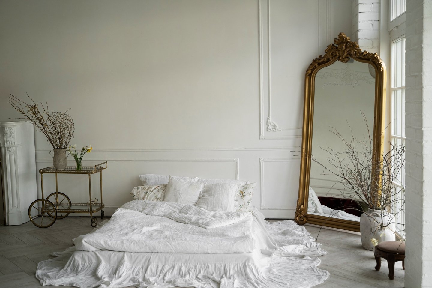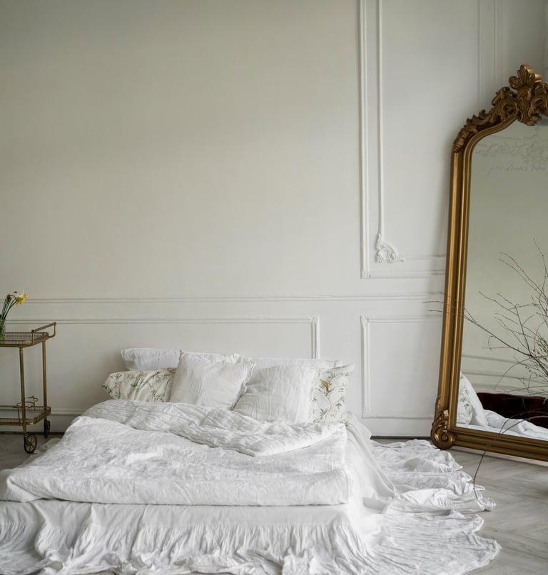 Moulures en bois, rideaux, ajout d'éléments non intrusifs, panneaux 3D, pochoirs, etc